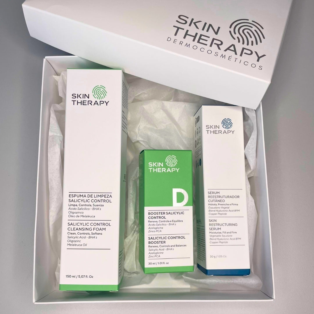 O kit foi desenvolvido especialmente para peles oleosas e acneicas. Ele trata desde a limpeza até a hidratação, ajudando a controlar a oleosidade, desobstruir poros, reduzir inflamações e prevenir o surgimento de novas lesões.